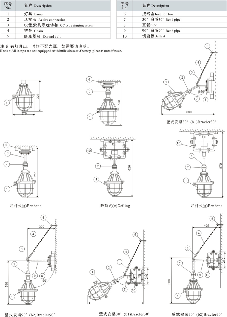 3、可配裝白熾燈、汞燈、高壓鈉燈、金鹵燈。