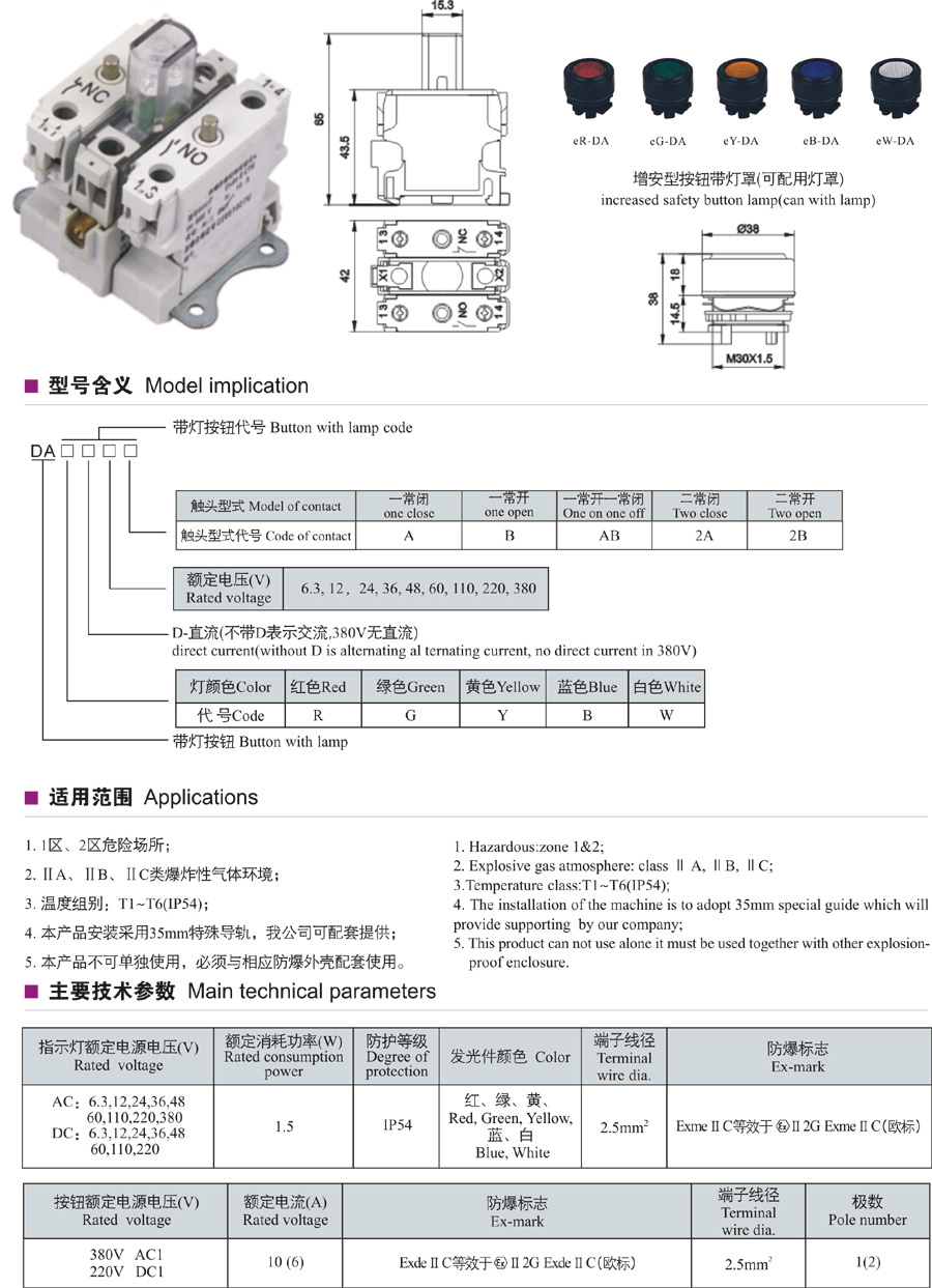 DA系列防爆帶燈按鈕